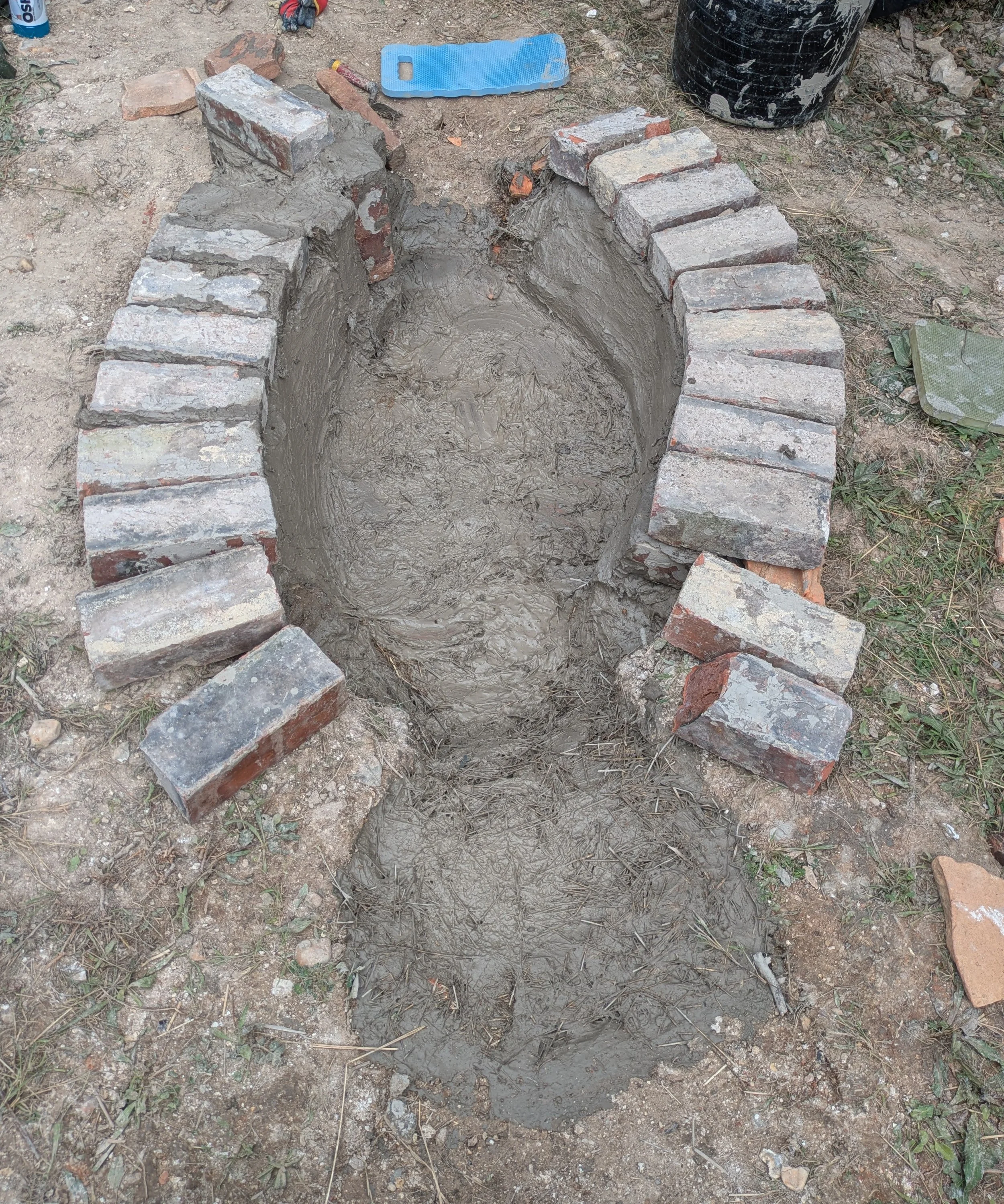 Line the excavated hole with bricks/daub/CBM (but don’t block up the slopes).