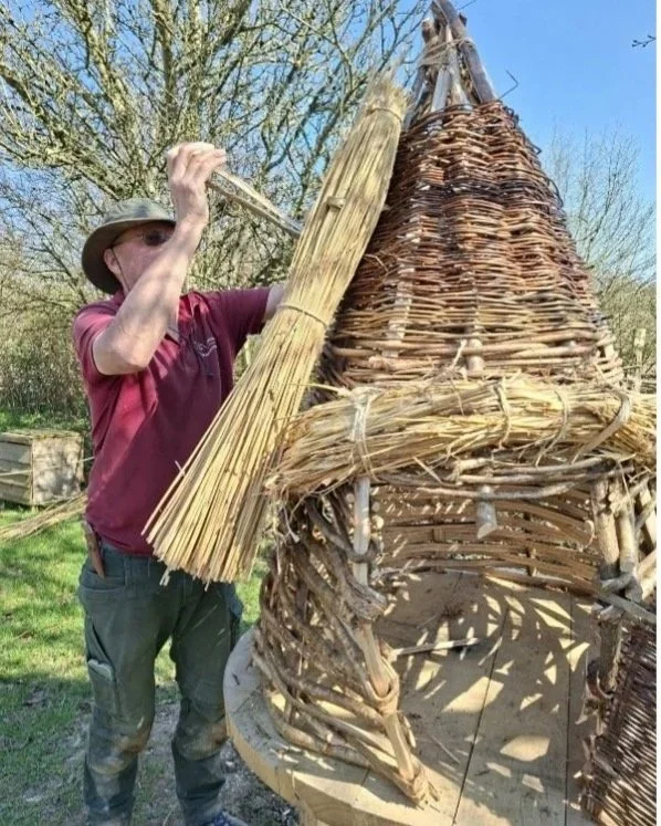 Thatching methods have evolved over the centuries and in the 17th and 18th century we have the introduction of the spar and the sway to secure layers of thatch. This is the method chosen to build our chicken house roof.