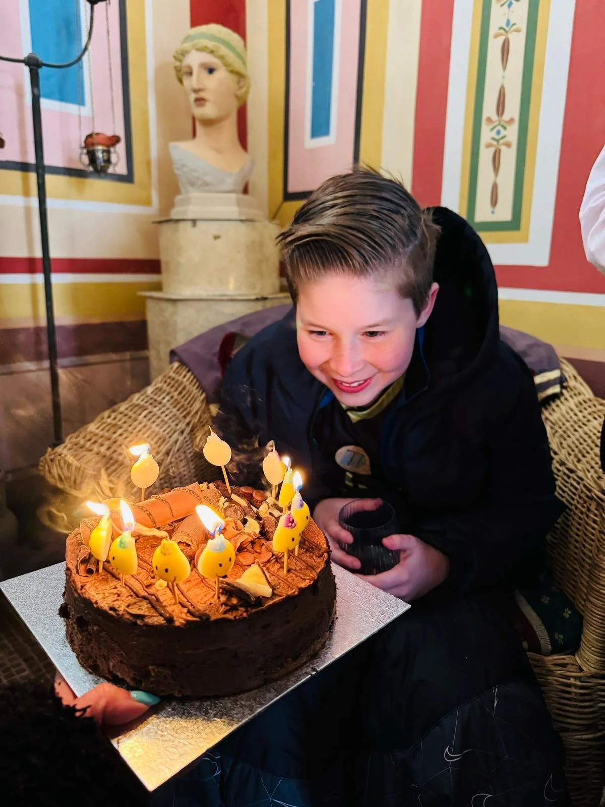 Following a quick break for the toilet, party guests will be invited behind the rope barrier to share cake and refreshments in the private marble mosaic room of the Roman villa.